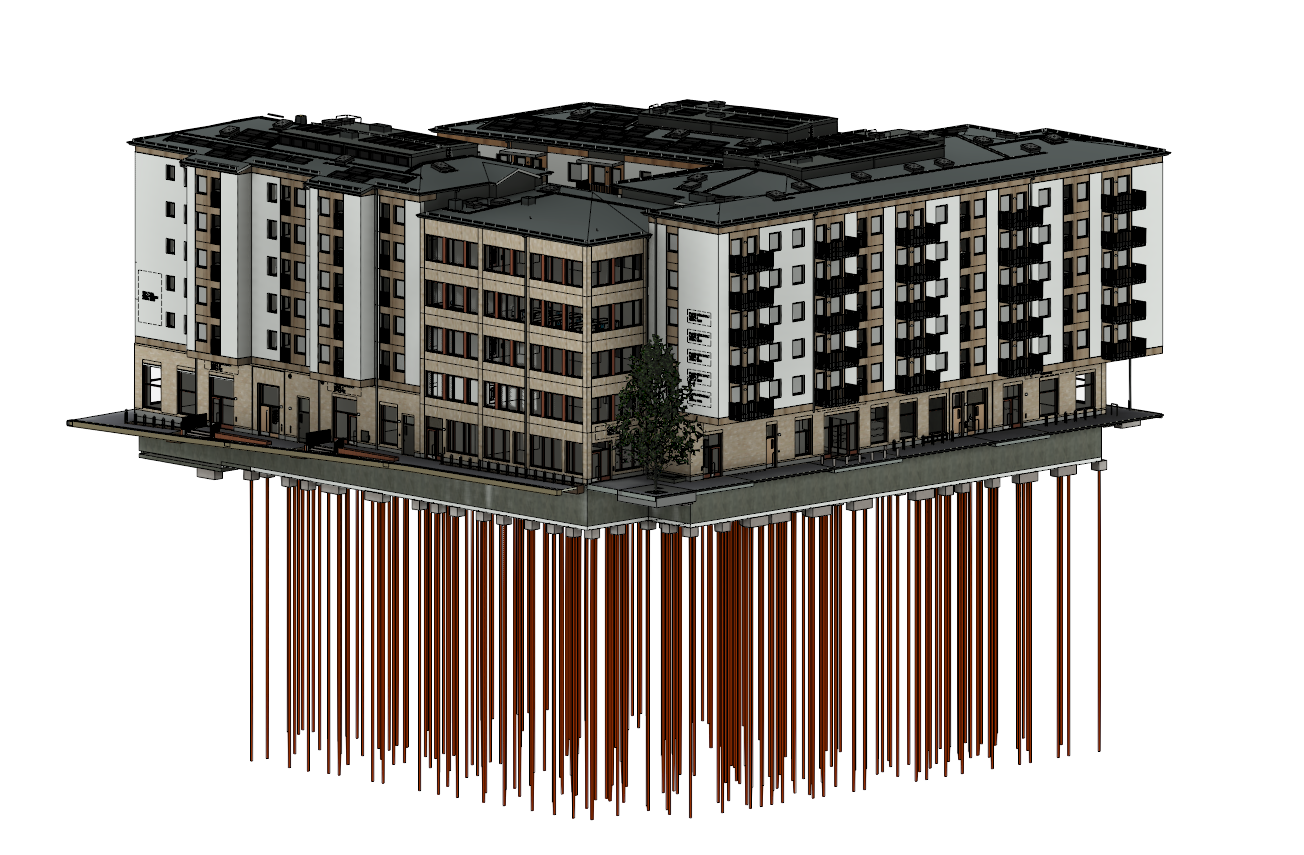 Då Länsstyrelsen i Uppsala inte godkände ett borrat geoenergilager p.g.a. att det är ett vattenskyddsområde och vattentäkt för Uppsala vatten, kom FERLA med idén att det i samband med att fastigheten skall pålas med ca 400 pålar, då förse ca 200 av de 400 pålarna med energikollektorer. På så sätt utnyttjas Uppsalaåsen som energikälla. Värmepumpen i anläggningen har det naturliga köldmediet CO2, vilket medför ytterligare hållbarhet och ett framtidssäkrat köldmedia. Kollektorkretsen har KILFROST som köldbärare. KILFROST är giftfritt och ej brandfarligt, vilket var ett krav från Länsstyrelsen och ett hållbarhetsperspektiv från beställaren.